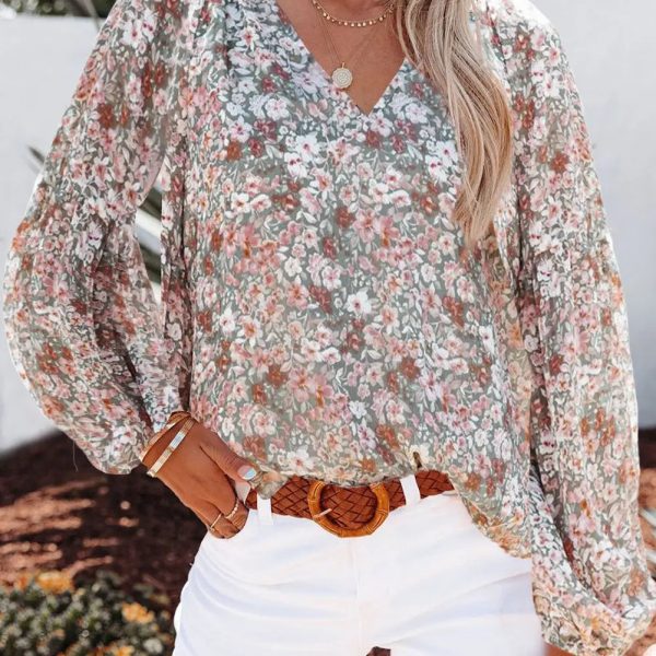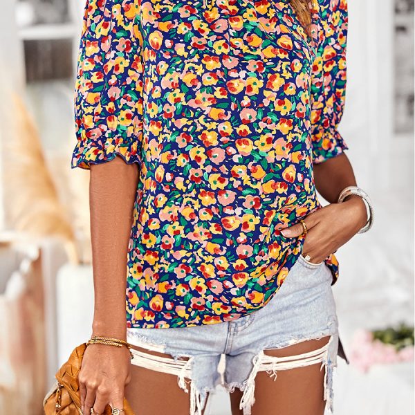 Mock Neck Colorful Floral Shor...