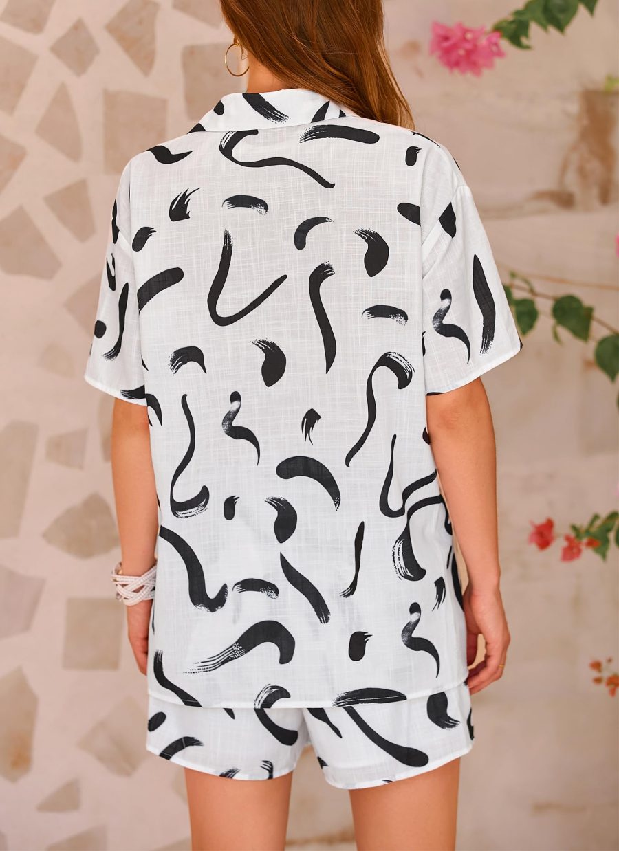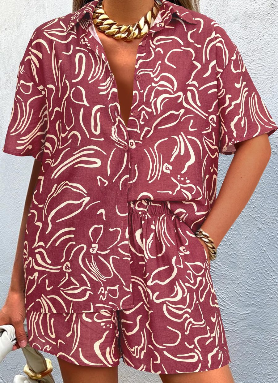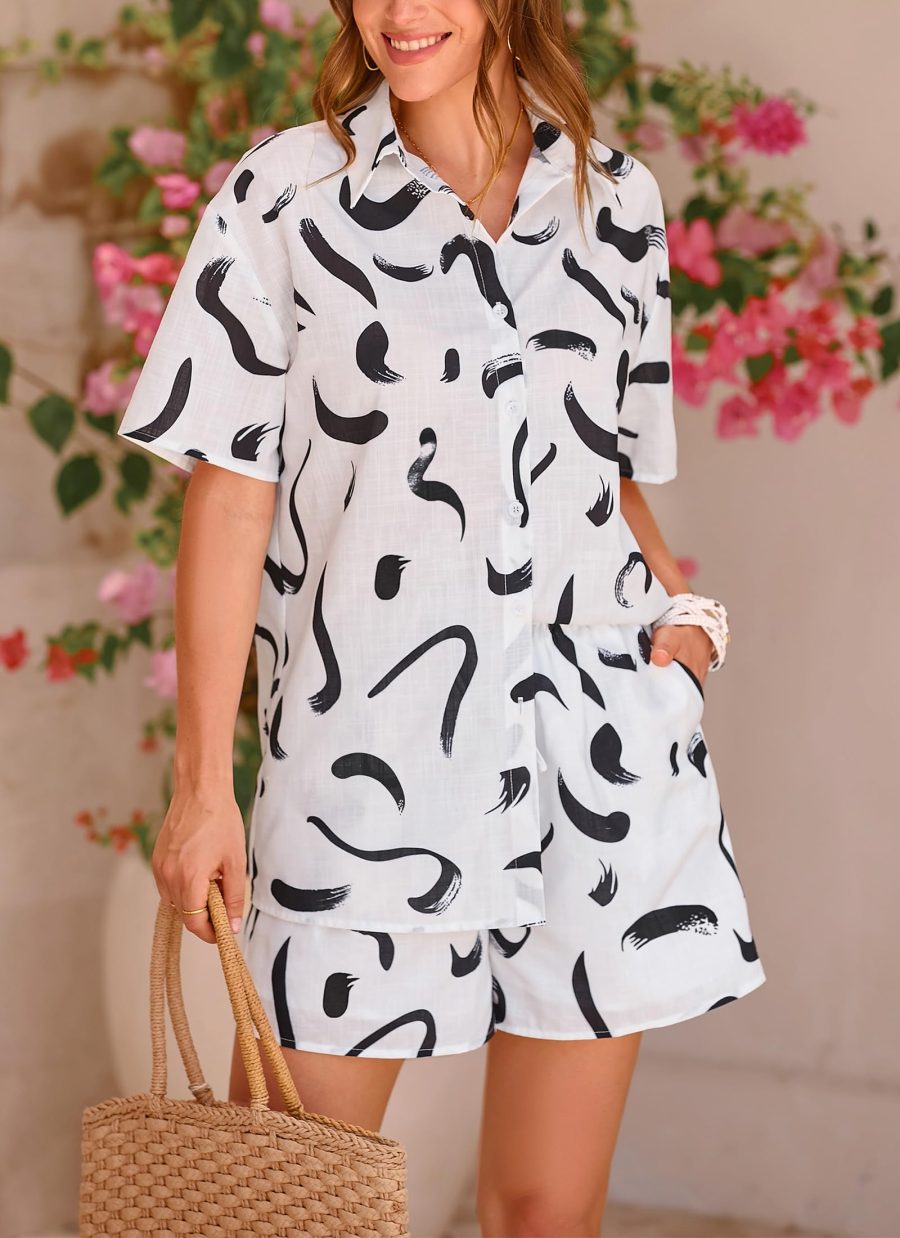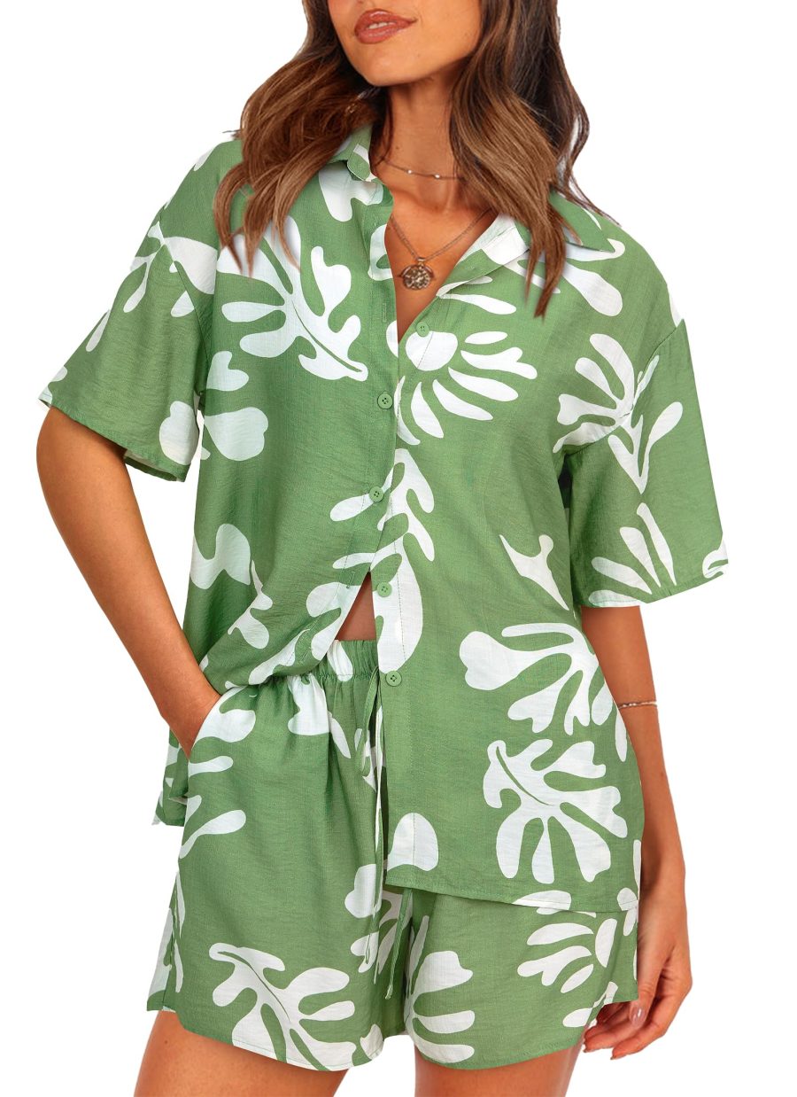 2 Piece Summer Beach Outfits Printed Short Sleeve Tops Lounge Shorts Casual Tracksuit Set