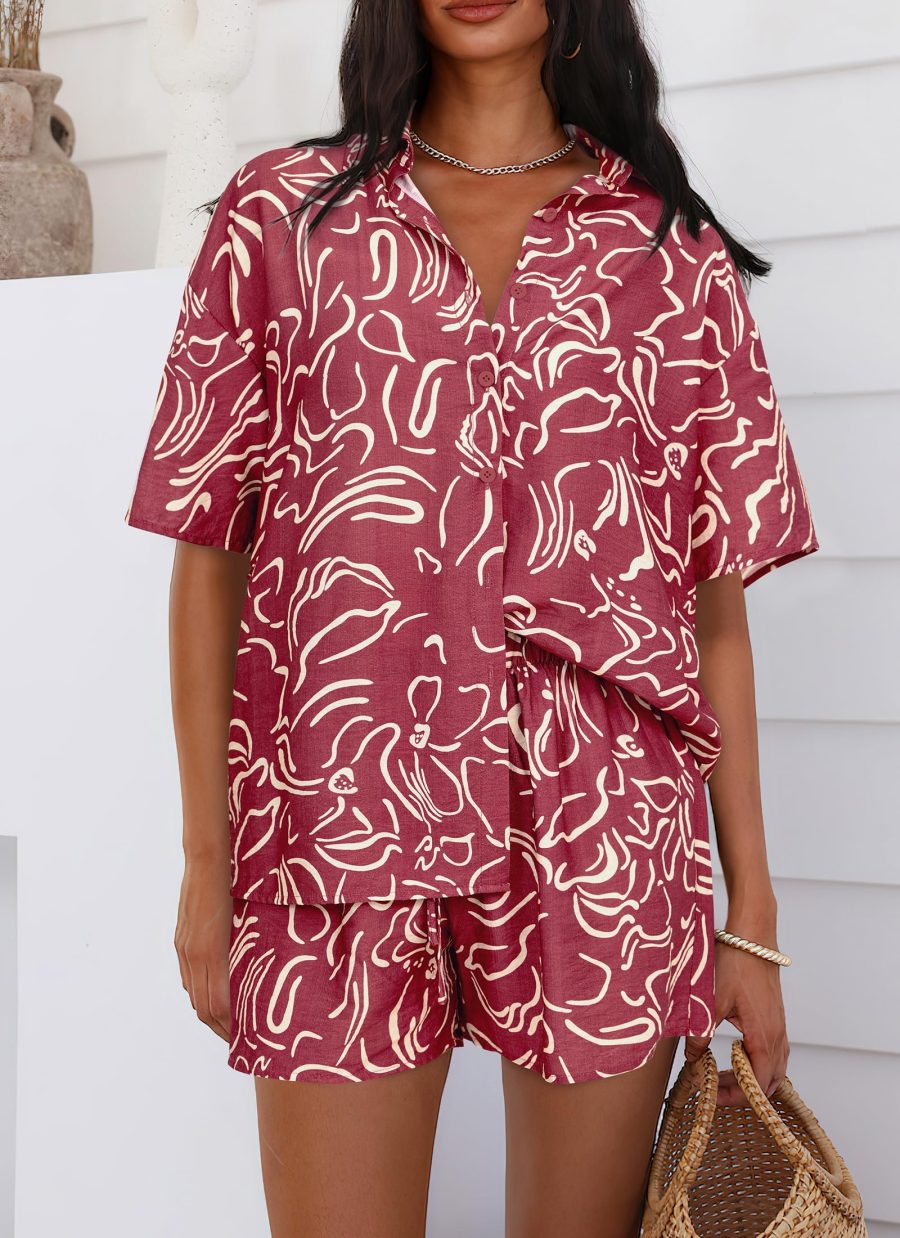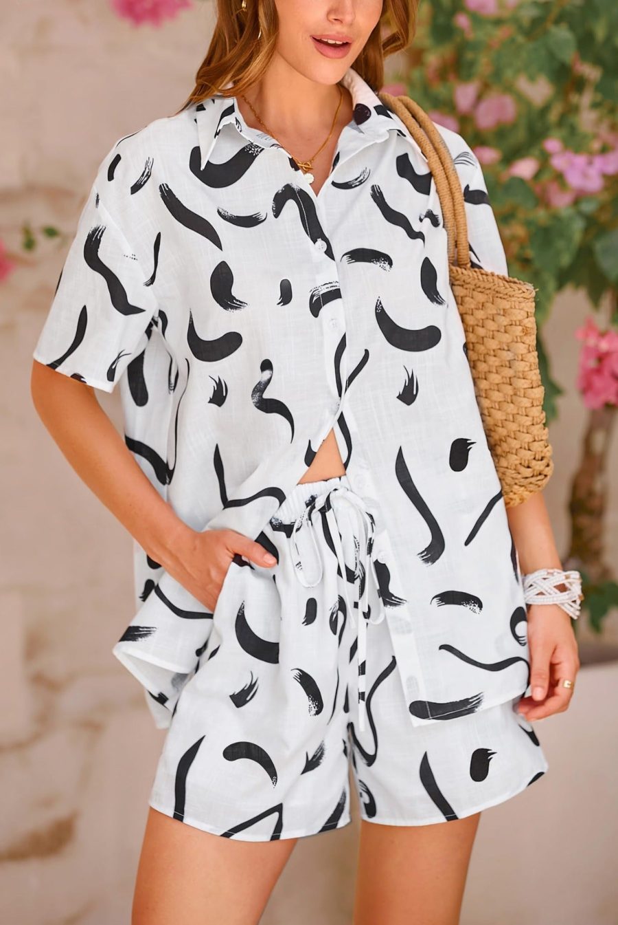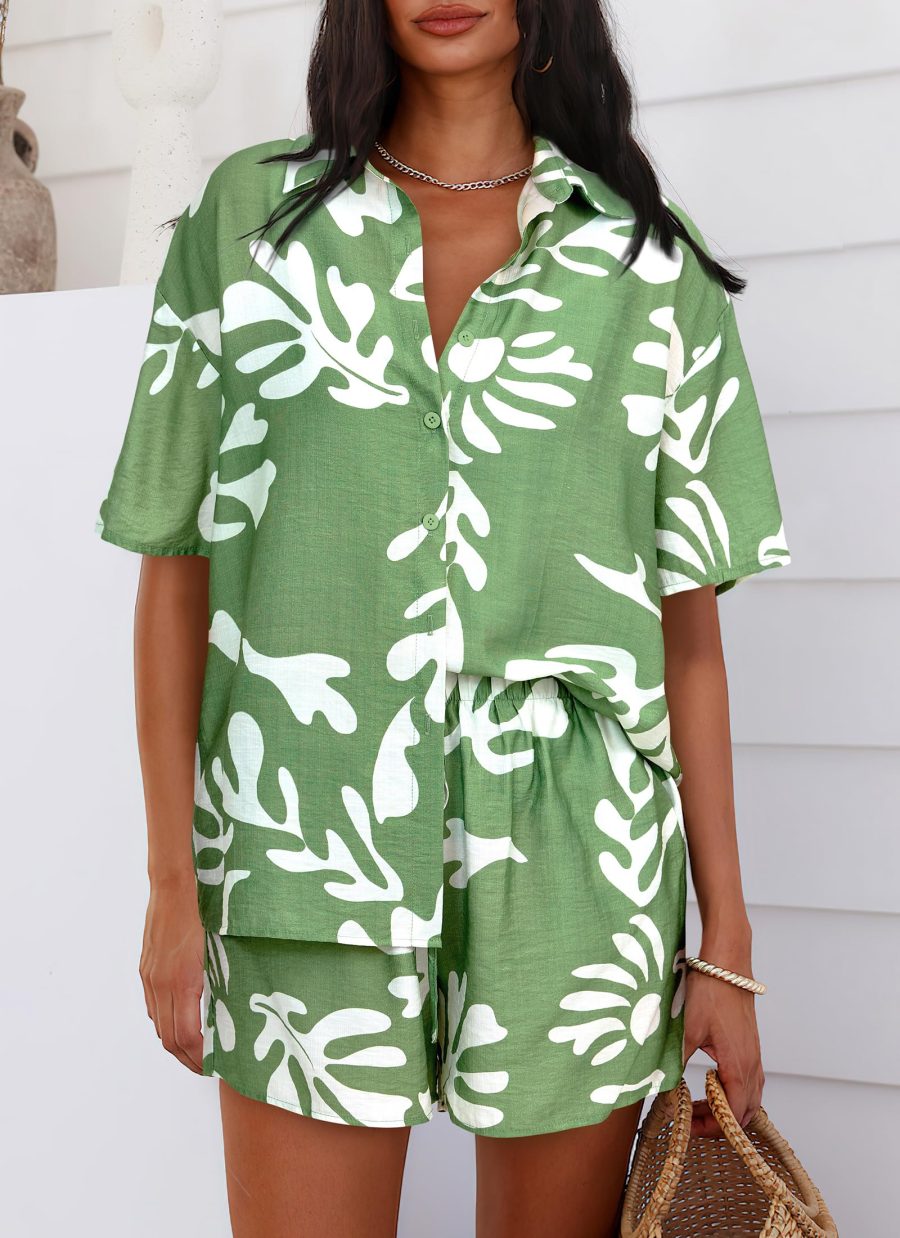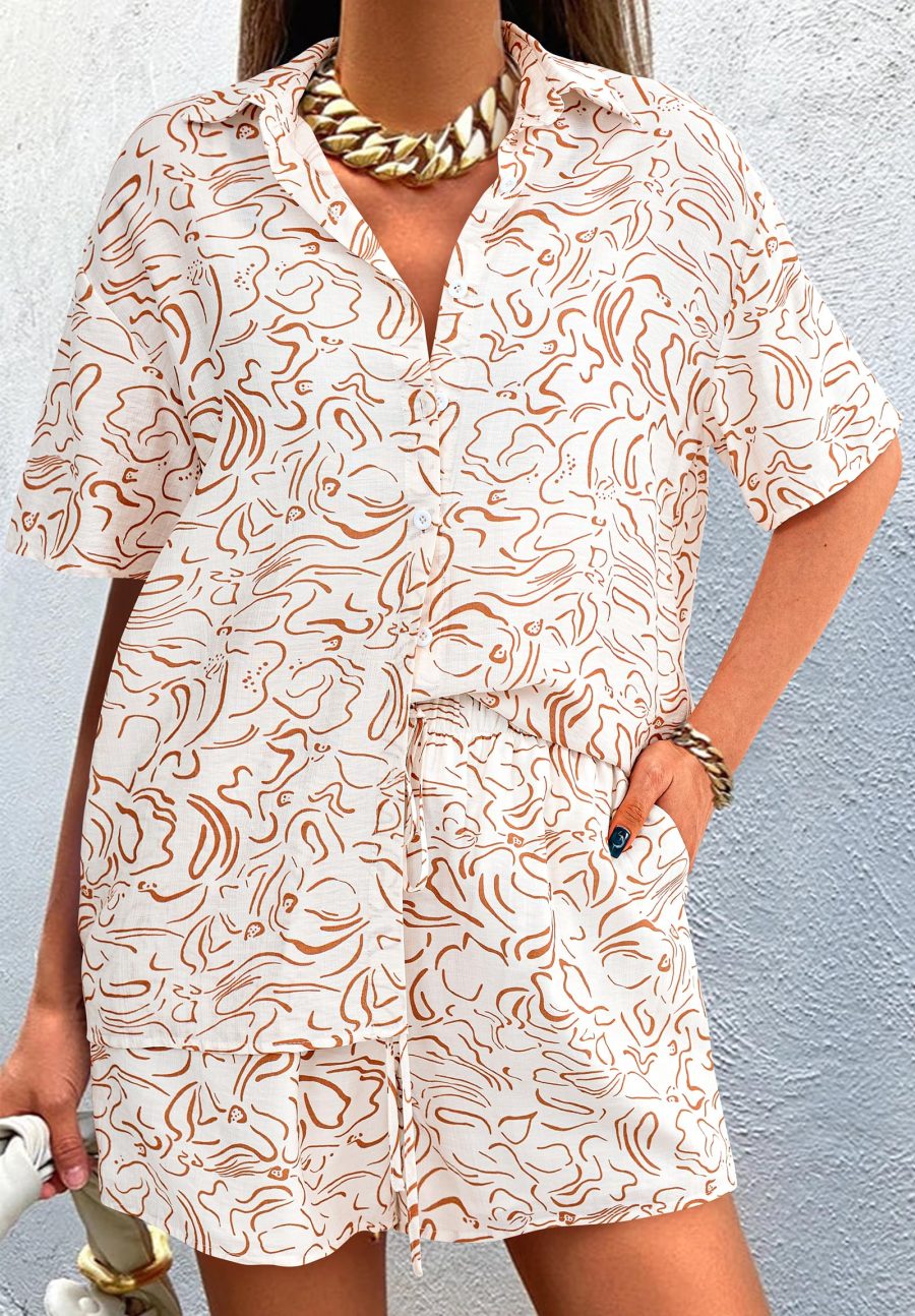 2 Piece Summer Beach Outfits Printed Short Sleeve Tops Lounge Shorts Casual Tracksuit Set