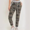 Camo Print Joggers with Elasticized Drawstring Waist in Green/Grey