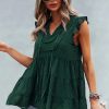Cap Sleeve Swiss Dot Ruffle Babydoll Shirts quantity