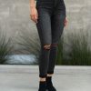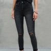 These Casualslipdress faded jeans are not your ordinary skinny jeans. These faded dark grey high rise distressed skinny jeans are a unique closet necessity! Wear this with a relaxed tee and your favorite pair of chelsea booties for a stunning everyday outfit.