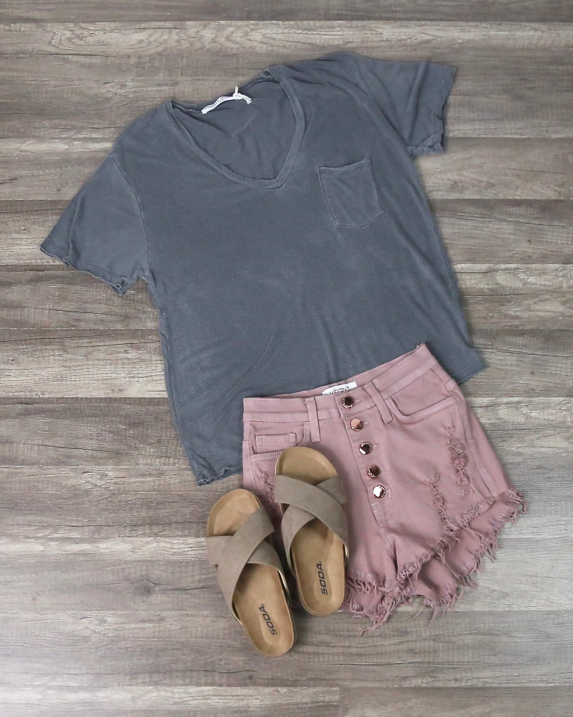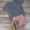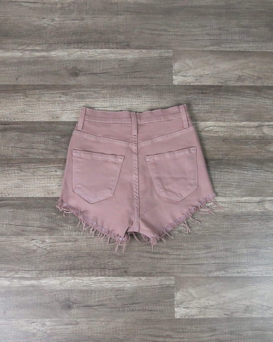 Casualslipdress High Rise Single Cuff Mom Shorts in Light Denim
