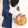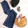 Classic Casualslipdress pull-on flare jeans featured in a clean silhouette with an extreme flare with a slight stretch. Back pockets and back knee seam detailing. This mid-rise style has an elastic waistband for an easy fit.