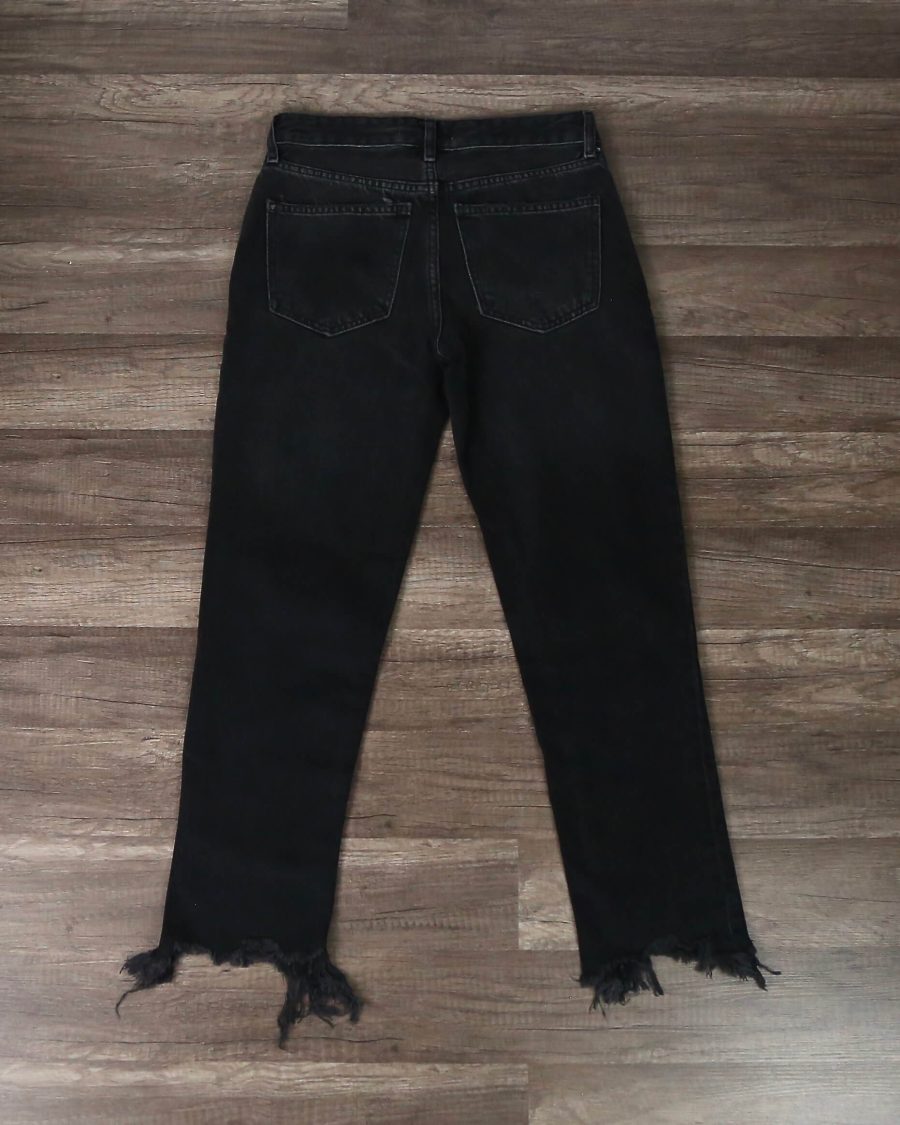 Step out in street-chic style with distressed jeans from Casualslipdress in a fresh faded black wash. These perfect pair of jeans feature a mid rise, zipper fly-button closure, belt loops, distressed details, and a ripped hem. Pair these jeans with your favorite top and some sandals or booties!