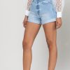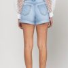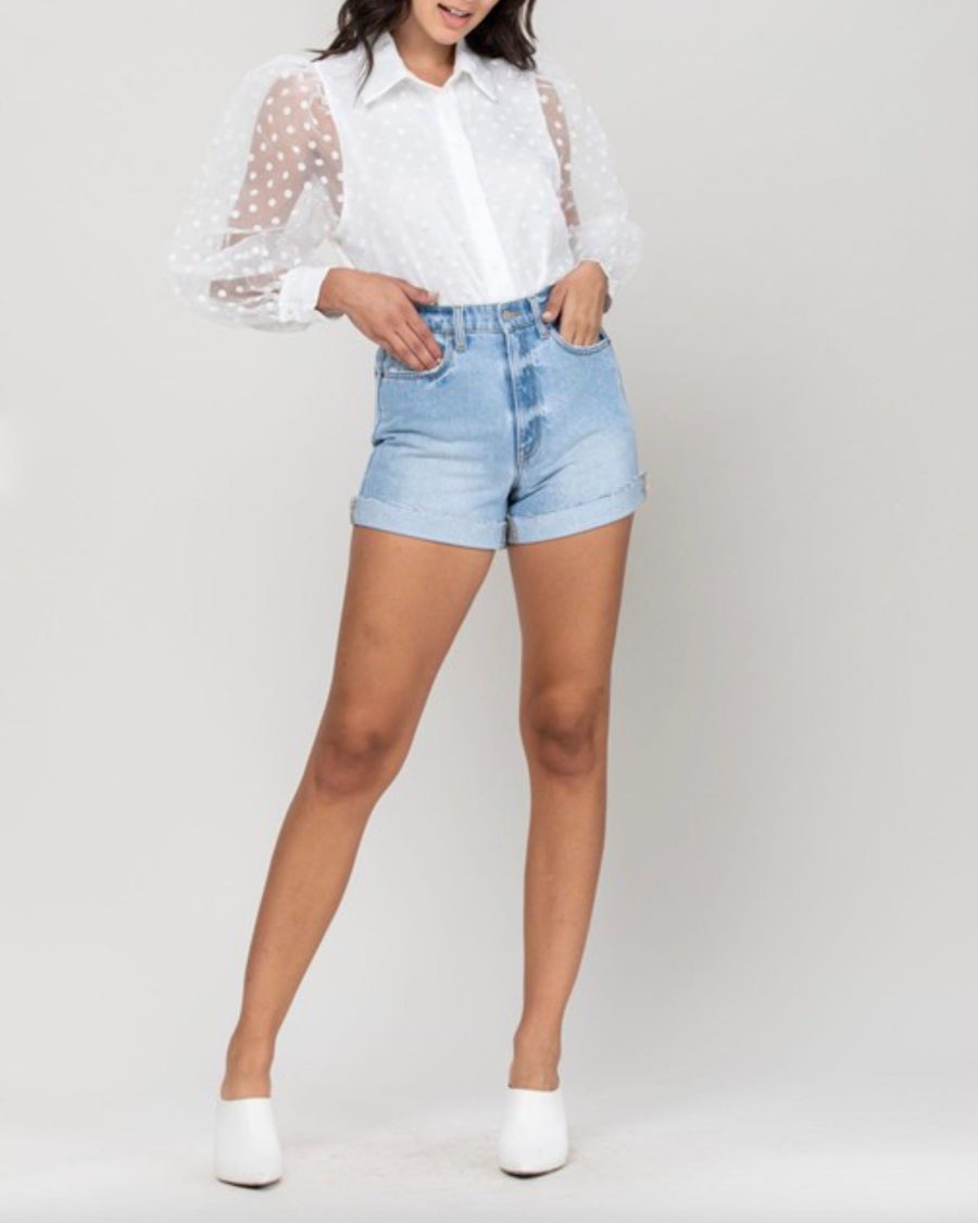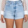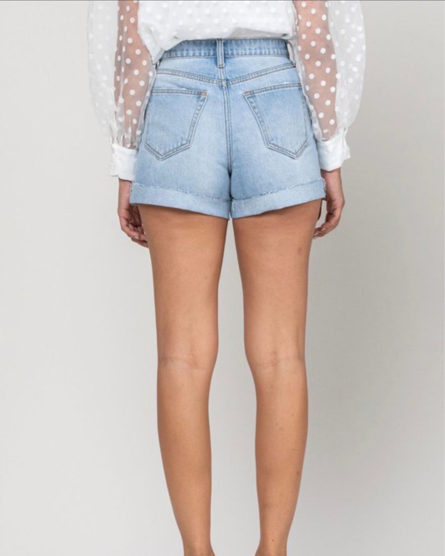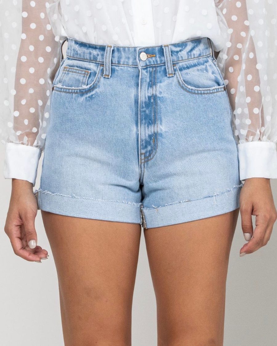 Casualslipdress High Rise Single Cuff Mom Shorts in Light Denim