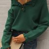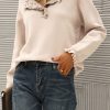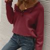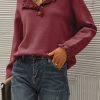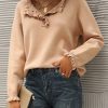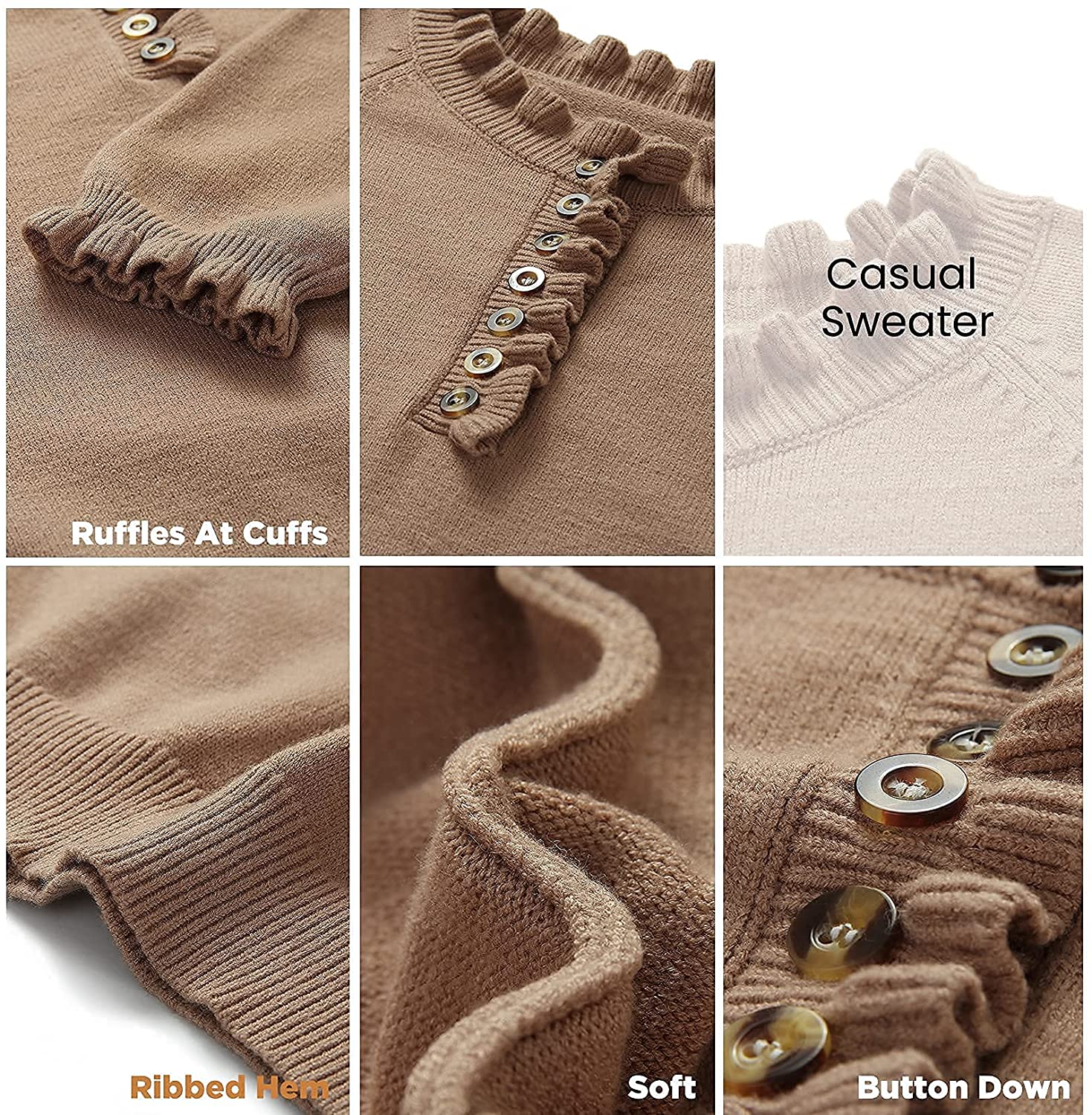 - FASHIONABLE SWEATER – The Long Sleeve Pullover Enchants With Its Elaborate Details. The Crew Neck , Which Create a Casual And Chic Vibe. A Classic With An Eye-Catching Effect: The Trendy Sweater With Solid Color Impresses With Its Ruffle Details And Buttons At The Top. The Attractive V Neckline or Vintage Round Neck can be shown by unbuckle or button up. The Long Sleeves With Knitted Ruffles Cuff Are Particularly Flattering. This Sweater Is a Timeless And Ideal Companion In Chilly Days