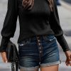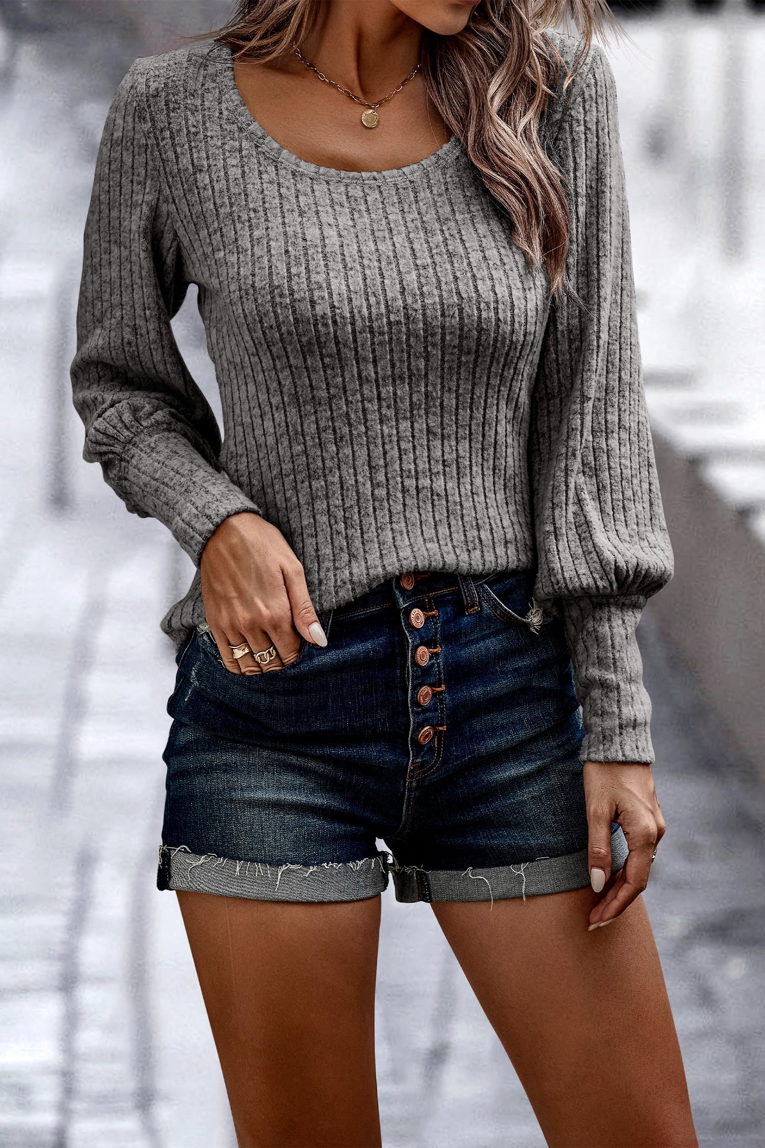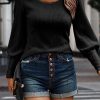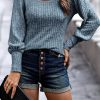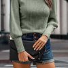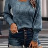 Crew Neck Ribbed Knit Jumper Tops Pullover