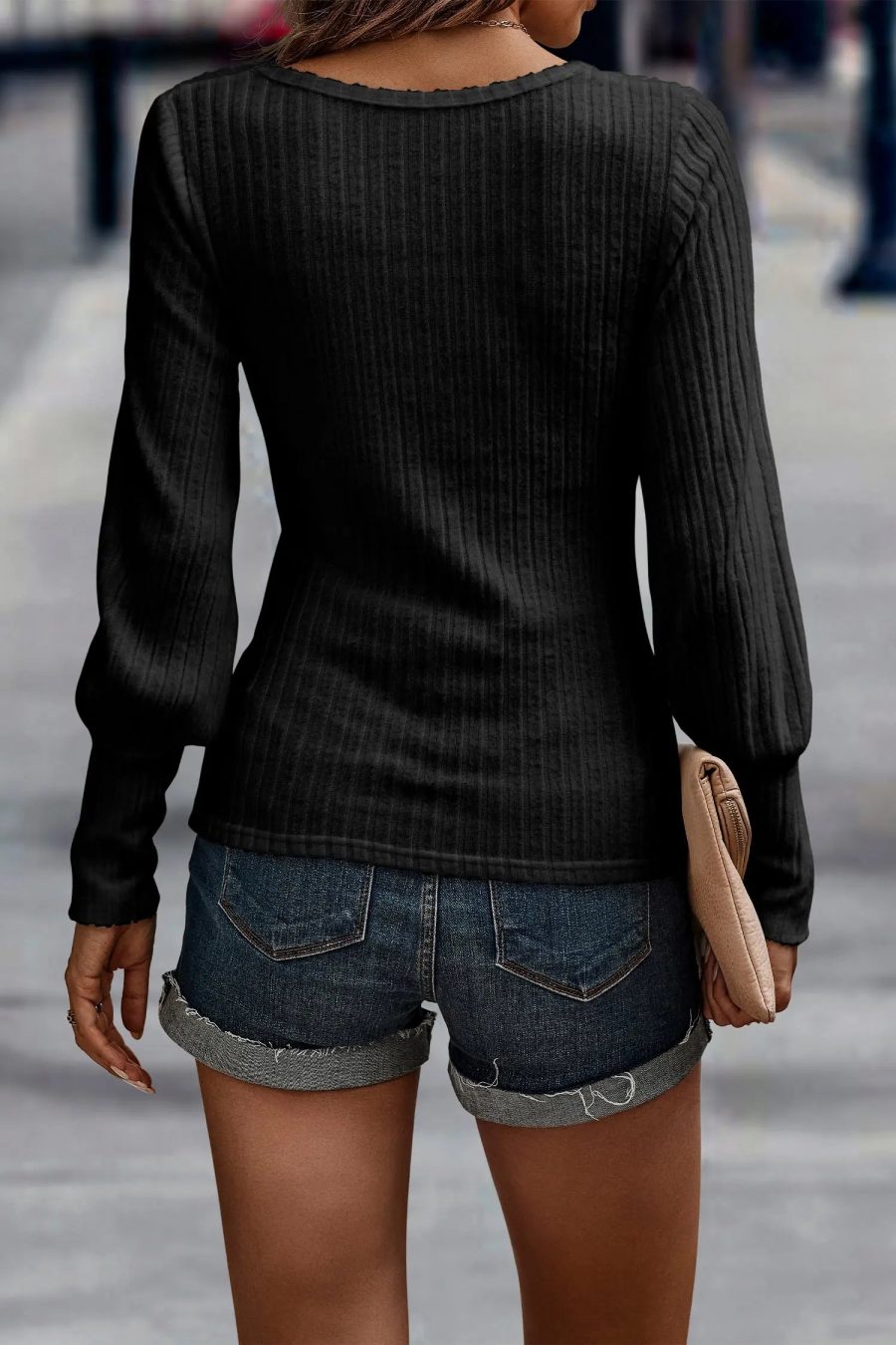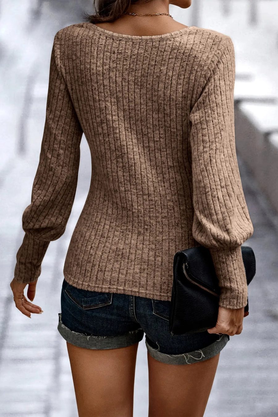 Crew Neck Ribbed Knit Jumper Tops Pullover quantity
