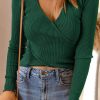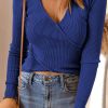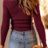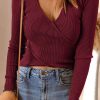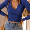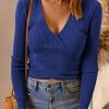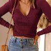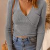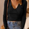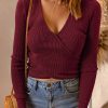 V Neck Pullover Ribbed Knit Slim Fitted Shirts