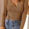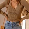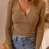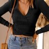 V Neck Pullover Ribbed Knit Slim Fitted Shirts quantity