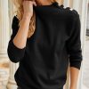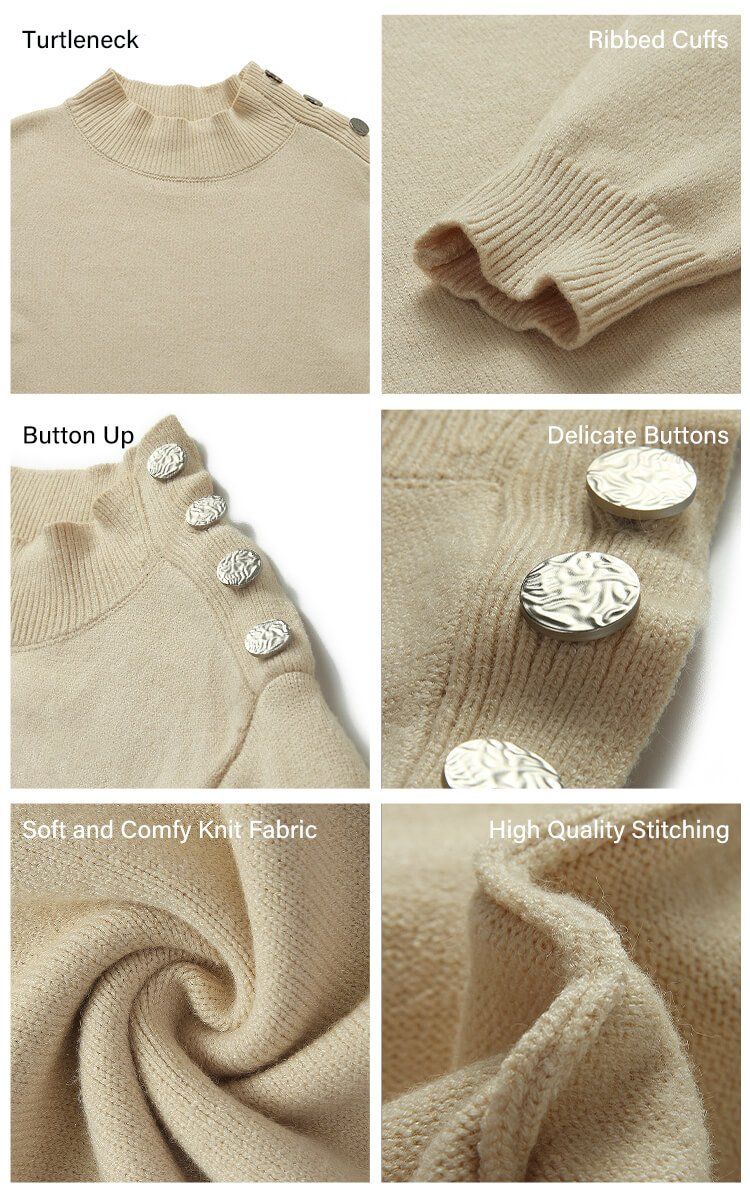 Long Sleeves Solid Color Button Down Turtleneck Knit Sweater