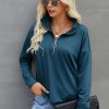 - COLOR OPPTIONS:This pullover sweatshirt has five colors to choose-Brown women’s long sleeve lapel zipper sweatshirt/Black half zip long sleeve womens casual tops/Light Grey casual tunic sweatshirt for women/Army green casual fall tops for women/Navy long sleeve women pullover sweatshirt.