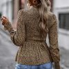 Tie V Neck Long Sleeve Babydoll Peplum Tops