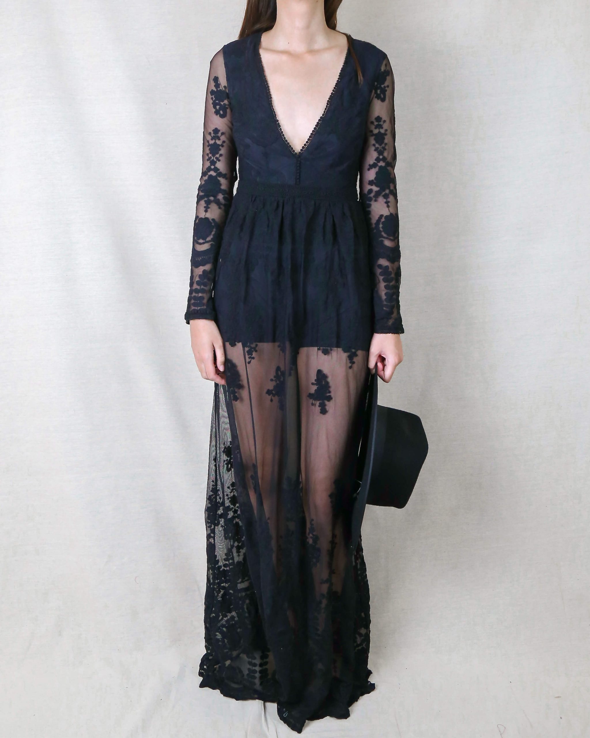 Casualslipdress Embroidered Maxi Dress in Black quantity