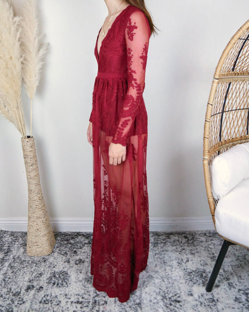 Casualslipdress Embroidered Maxi Dress in Deep Red