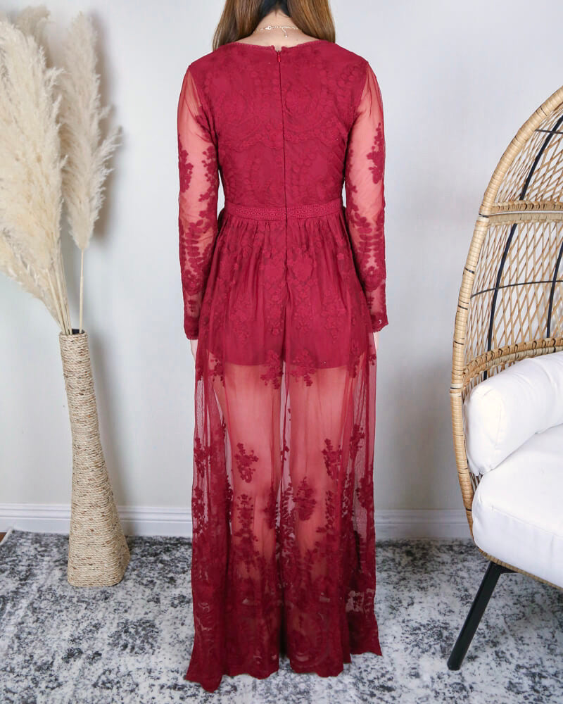 Casualslipdress Embroidered Maxi Dress in Deep Red quantity