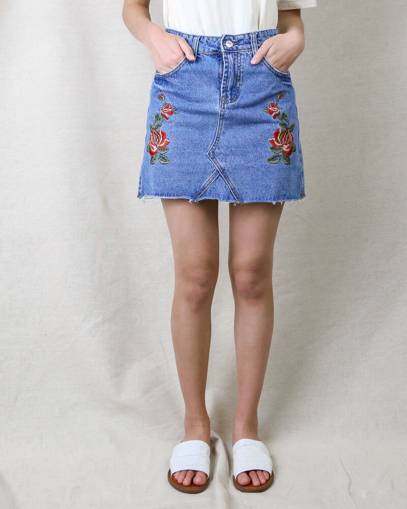 Casualslipdress Embroidered Denim Skirt in More Colors