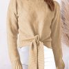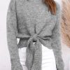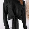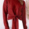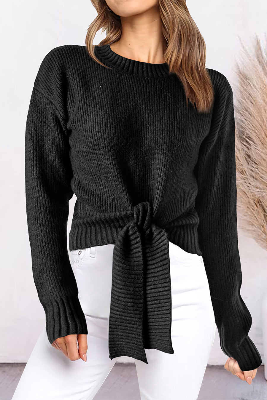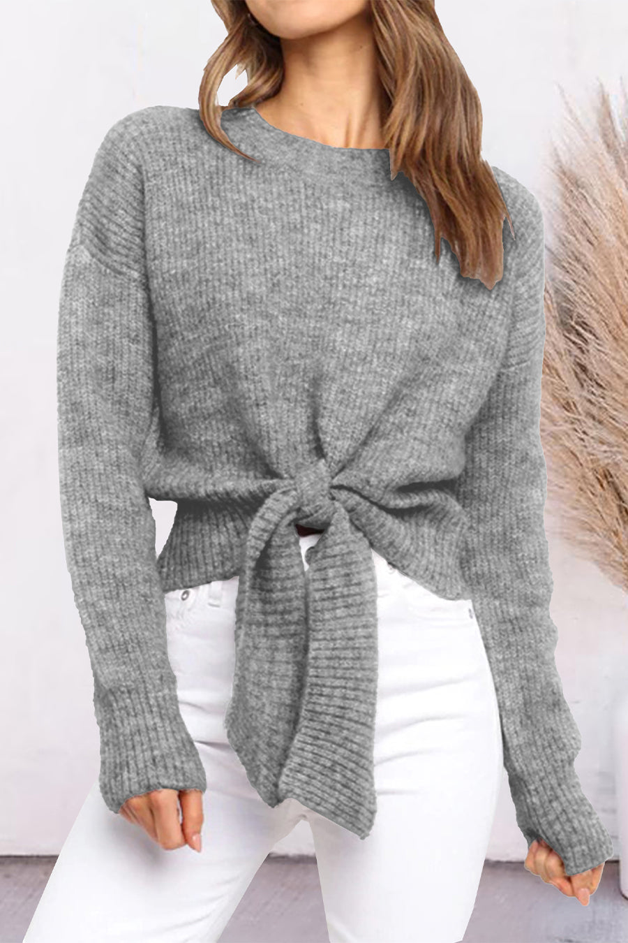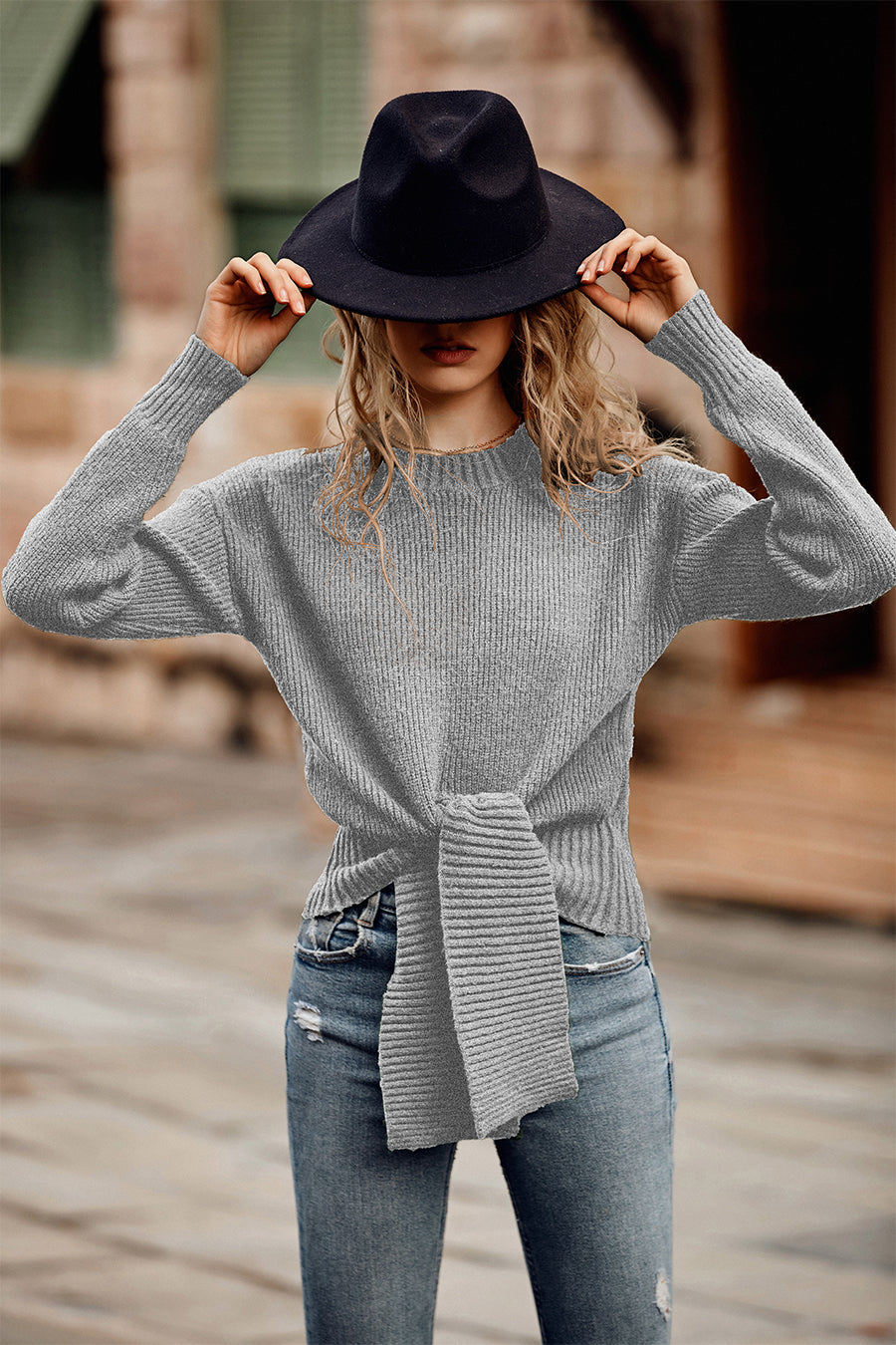 Tie Front Crew Neck Ribbed Pullover Tops Jumper quantity