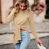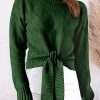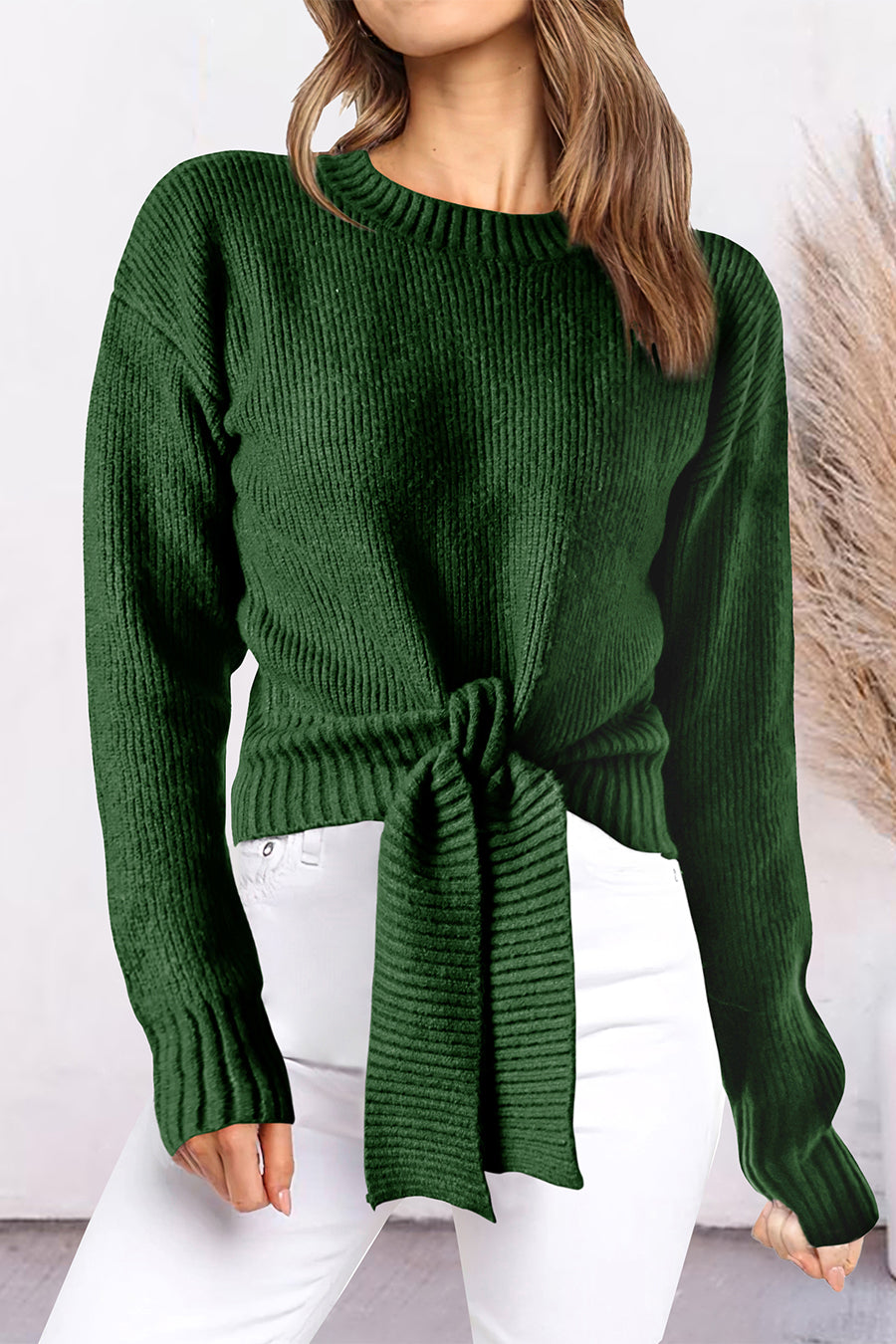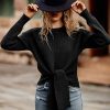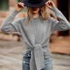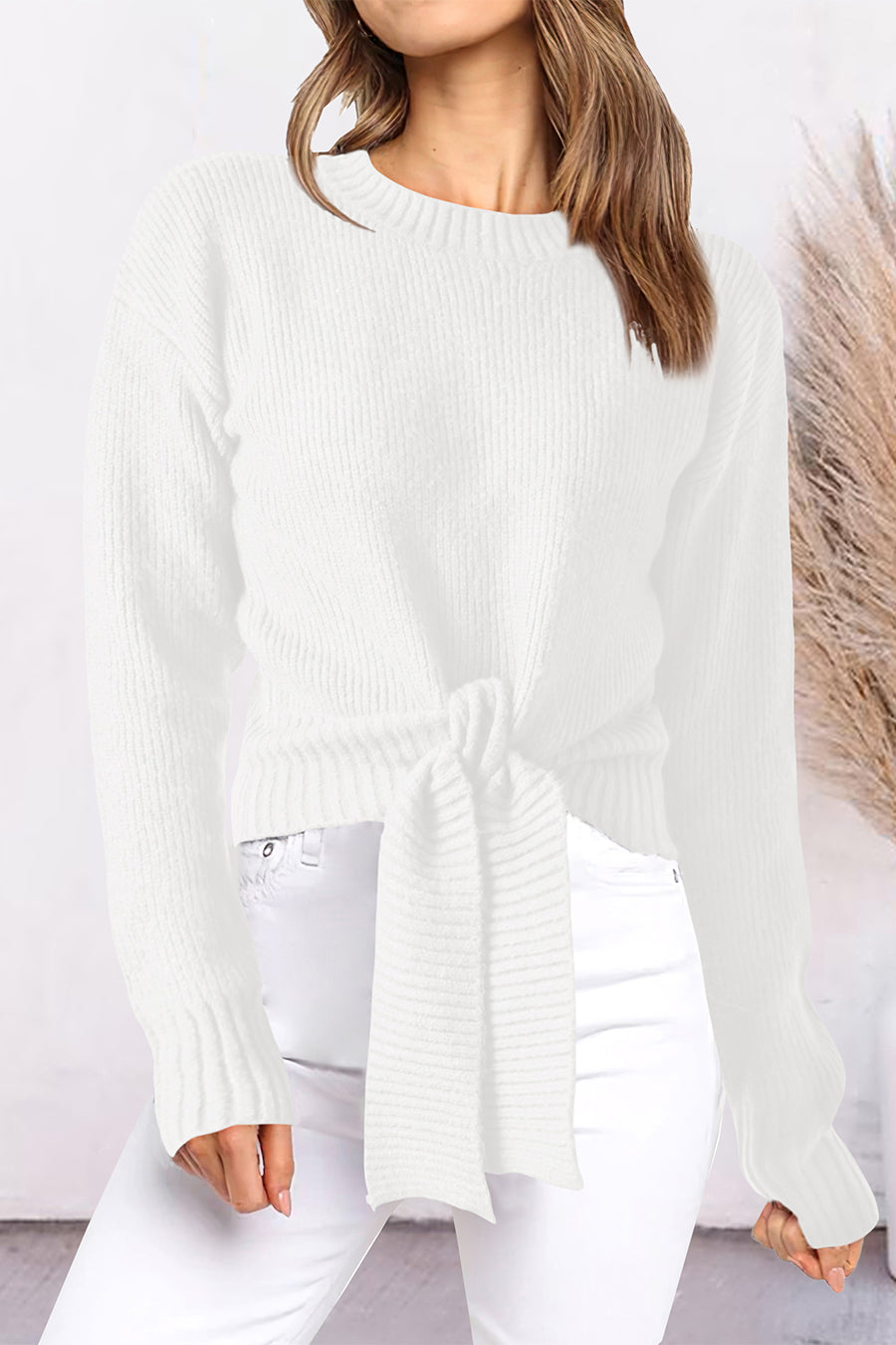 Tie Front Crew Neck Ribbed Pullover Tops Jumper