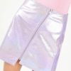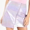 FINAL SALE – Wild Honey – Iridescent PU asymmetrical zip skirt in Holographic Purple